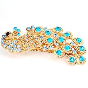 Vintage Rhinestone Peacock Hair Clip - Blue